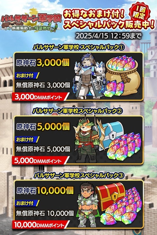 1回購入限定の「バルサザーン軍学校ー鉄嵐熊戦士と嗜虐教官」スペシャルパックが3種期間限定で登場!