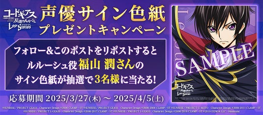 ★4ルルーシュ[復活のゼロ]、★4C.C.[取り戻したかったものは……]の登場を記念し、ルルーシュ役 福山潤さん、C.C.役 ゆかなのサイン色紙キャンペーンを開催!
