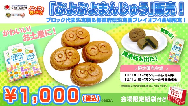 「中国・四国ブロック/イオンモール広島府中」「関東ブロック/イオンモール幕張新都心」では、通常の「ぷよぷよまんじゅう」に加えて、新発売の「ぷよぷよまんじゅう 抹茶」もお買い求めいただけます。