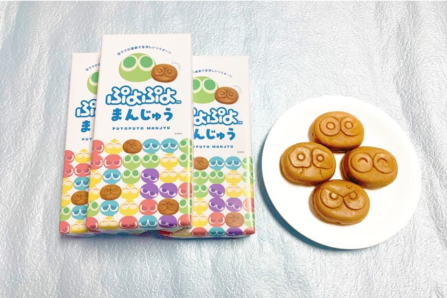 「平安堂梅坪」から発売中の「ぷよぷよまんじゅう」は、愛らしい「ぷよ」を模した生地でこしあんを包み込んだお饅頭です。