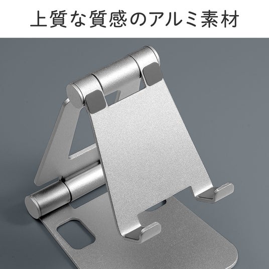 折りたたみ式 スマホスタンド アルミ製 無段階 角度調整 2関節 スマートフォンスタンド Switch シルバー