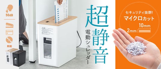 夜やミーティング中でも気にならない超静音仕様で、連続使用時間10分可能。カード、メディア細断にも対応。