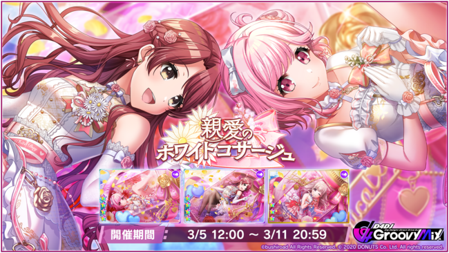 株式会社ブシロード(本社:東京都中野区、代表取締役社長:橋本義賢、以下ブシロード)は、株式会社DONUTS(本社:東京都渋谷区、代表取締役:西村啓成)と共同開発のスマートフォン向けリズムゲーム「D4DJ Groovy Mix」(以下グルミク)にて、イベント&ガチャ「親愛のホワイトコサージュ」を開催いたします。報道関係の皆様におかれましては、ぜひ本情報をお取り扱いいただけますよう、お願い申し上げます。