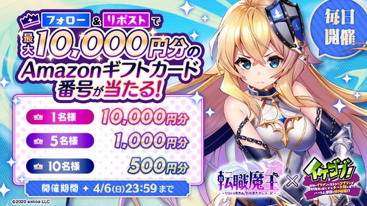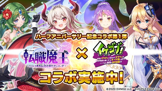 合同会社EXNOA(本社:東京都港区、CEO:村中 悠介、URL:https://games.dmm.com/)は、『転職魔王~リストラ勇者のお仕置きセレナーデ~』(以下、『転職魔王』)において、ハーフアニバーサリー記念として4大コラボの実施をお知らせいたします。