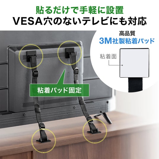 テレビ転倒防止ベルト VESA取付 クランプ固定 穴あけ不要 壁固定対応 震度6強 耐震試験済み