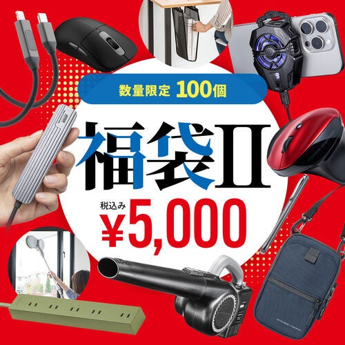 マウスやおしゃれな電源タップ、長財布が入る旅行ポーチなど、第2弾も盛りだくさんでご用意しました。数量限定100個、在庫限りの超お得な福袋です!第1弾をご購入のあなたもぜひチェックしてみてください。
