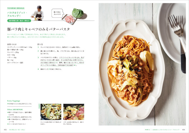 PART 2では、リストランテ アクアパッツァ・オーナーシェフの日高良実さんに教わる「家にアルモンデ! 絶品イタリアン」。ベーコンやソーセージなどの肉加工品、オイルサーディンやツナ缶などの缶詰、残った野菜など、おうちにあるものを組み合わせて作れる20品の本格的なパスタ料理とリゾットの作り方を紹介します。