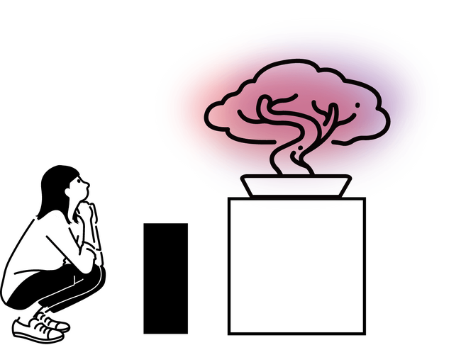 中景の「YOI-iro」は、盆栽庭園全体を見渡せる盆栽テラスから、アンドロメダ座の配置に並べられた庭園全体の照明演出を変えることができるコンテンツです。スマートフォンで二次元コードを読み取り、誕生日を入力すると、庭園全体の照明演出が12種類の中から選ばれた演出に変化します。操作がない場合は、庭園全体が電球色、四季、宇宙のシーンなどの合計10分のタイムラインでループ演出が行われます。