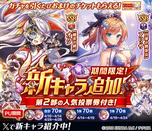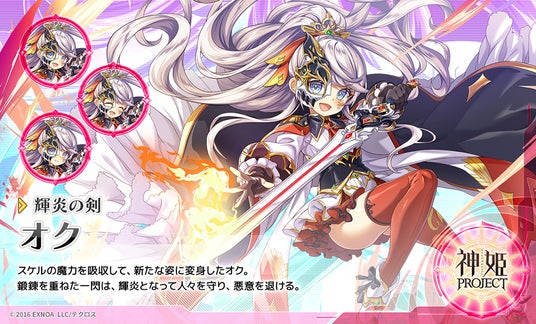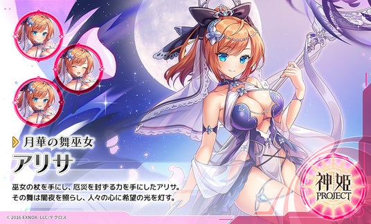 合同会社EXNOA(本社:東京都港区、CEO:村中 悠介、URL:https://games.dmm.com/)が運営するDMM GAMESにおいて『神姫PROJECT』は、9周年を記念して「オク」「アリサ」が新衣装で登場する事を発表した。さらに毎日最高100連のルーレットガチャの開催や、プレミアムパスの特典が更新される。