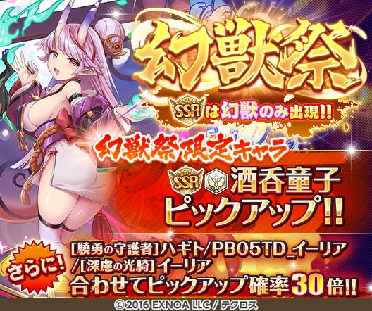 さらに今回は幻獣祭限定の鬼神シリーズ幻獣「酒呑童子」が新登場!