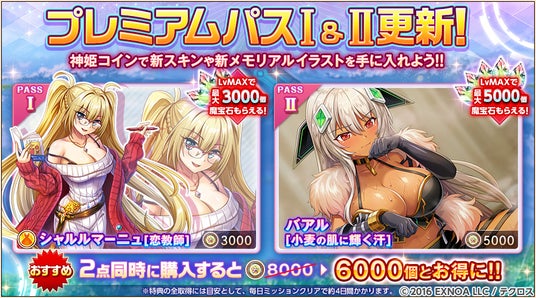 神姫コインで購入できるプレミアムパスI・IIの追加特典には、なんと新たな英霊スキンやメモリアルイラストも!