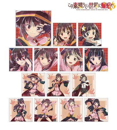 めぐみん、ゆんゆん、こめっこ、あるえ、ふにふら、どどんこ、ねりまきのイラストを新たなタッチで魅力的に表現し、アクリルカードに仕上げました。