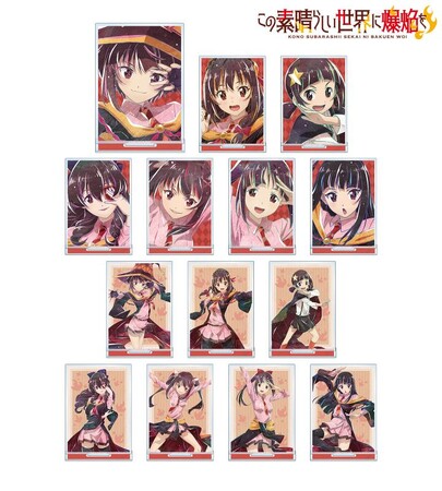 めぐみん、ゆんゆん、こめっこ、あるえ、ふにふら、どどんこ、ねりまきのイラストを新たなタッチで魅力的に表現し、アクリルスタンドに仕上げました。