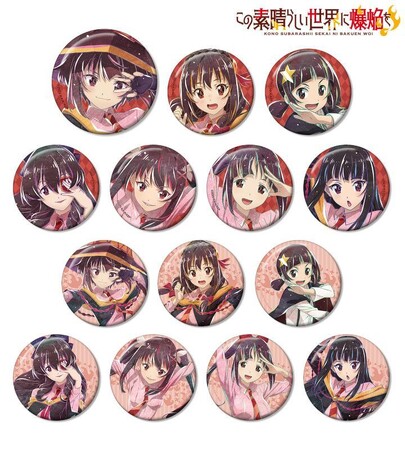 めぐみん、ゆんゆん、こめっこ、あるえ、ふにふら、どどんこ、ねりまきのイラストを新たなタッチで魅力的に表現し、缶バッジに仕上げました。