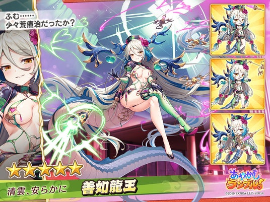 合同会社EXNOA(本社:東京都港区、CEO:村中 悠介、URL:https://games.dmm.com/)が運営するDMM GAMESにおいて、あやかし美少女たちと冒険する、迎撃型爽快スキルバトルRPG『あやかしランブル!』(https://ayarabu.jp/)は、4月14日に、新たに「★5 善如龍王」「★5 妲己」を追加したことを発表しました。