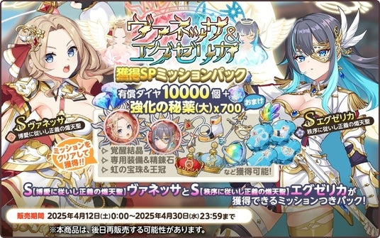 Sヴァネッサ【博愛に従いし正義の熾天聖】&Sエグゼリカ【秩序に従いし正義の熾天聖】が獲得できるスペシャルミッションパックを販売中です。