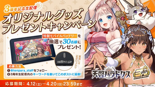 4月12日(土)に配信されました「テンパラ放送局 3周年記念生放送」を記念し、公式Xにて抽選で30名さまにオリジナルグッズが当たるキャンペーンを実施中!
