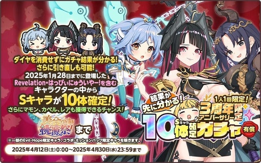 2025年4月12日(土)0:00より、『3周年アニバーサリー限定!結果が先に分かるS10体確定ガチャ』が開催中です。