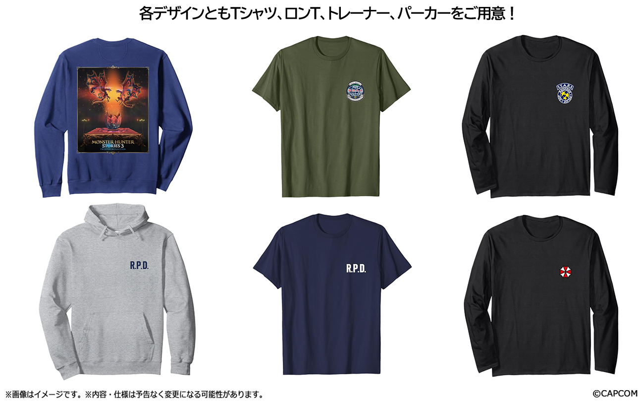 「モンスターハンターストーリーズ3」、「バイオハザード」シリーズの新作デザインが登場! 半袖Tシャツはもちろん、ロンT、トレーナー、パーカーのお好きなタイプからお選びいただけます。今すぐチェック!