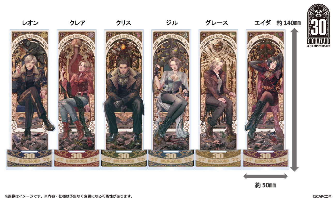 「バイオハザード」シリーズ30周年記念の描き起こしアートがデザインされたアクリルスタンドが予約開始! TGS2025物販ブースでの人気商品なので、この機会にお気に入りのキャラクターたちを予約して並べよう!