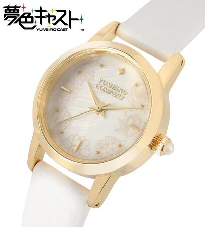 ホワイトのシェルを使用した文字盤には、各キャストのイメージフラワーをデザインしております。