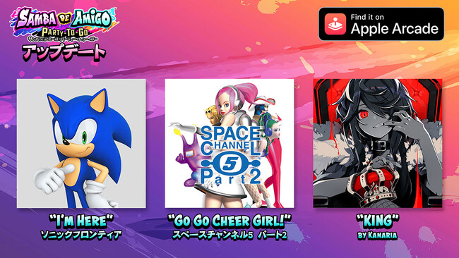 株式会社セガは、Apple社がApp Storeで提供しているサブスクリプションサービス「Apple Arcade」にて配信中のリズムアクションゲーム『サンバDEアミーゴ:パーティー・トゥー・ゴー』にて、楽曲追加等のアップデートを実施しました。