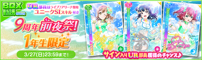 9周年前夜祭!SR以上確定BOX勧誘~Aqours~3年生