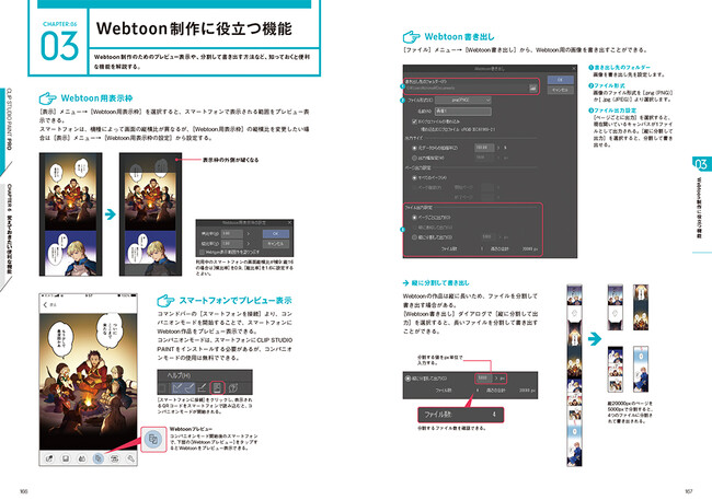 マンガ制作のためのツールやアニメーション機能のほか、シームレスなパターン、ロゴの作例など、デザインワークで役立つテクニックも盛り込みました。