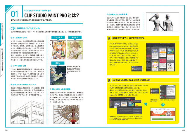 2018年発行の『CLIP STUDIO PAINT PRO 公式ガイドブック』を改訂し、2023年にリリースされたVer.2の新機能についても紹介しています。