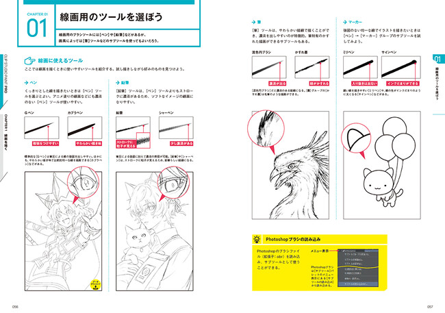 線画用のツールを選ぼう/ブラシの設定を調整しよう/下描きの設定/線画のテクニック/ベクターレイヤーの活用/定規できれいな形を描く/紙に描いた線画を読み込む/ゆがみツールで形を調整する