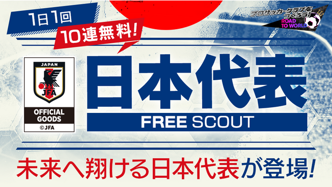 新バージョン日本代表選手が登場する10連スカウトが無料で引ける“日本代表FREE SCOUT”を開催!
