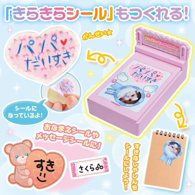 すきなカードや写真、イラストで「きらきらシール」も作れます