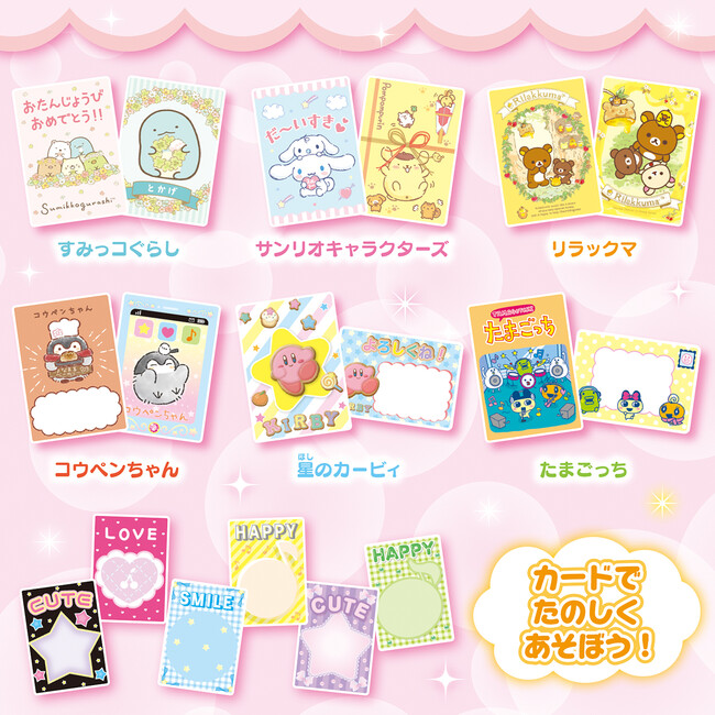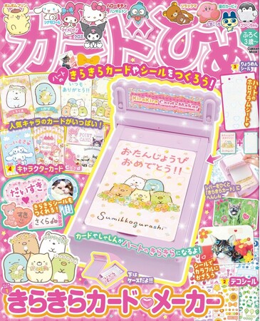 本誌にはすみっコぐらし、シナモロール、マイメロディなどの人気キャラや、かわいいイラストのカードがいっぱい。好きなカードをホログラム加工したり、なんちゃってカードで遊んだり、メッセージカードにおてがみを書いたり、一冊まるごとカード遊びが楽しめます!