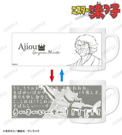 温度に反応する特殊なインクを使用しており、マグカップに温かい飲み物を入れると、アニメ第28話「激闘!大阪城・カレー丼春の陣」で陽一と一馬のカレー丼を食べた味皇が、大阪城と一体化します。