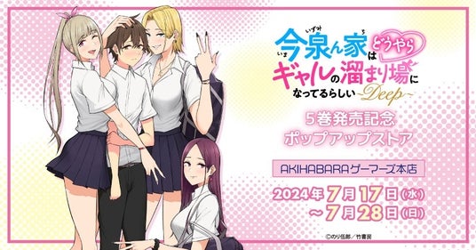 株式会社カードラボ ゲーマーズ(本社:東京都豊島区、https://www.gamers.co.jp/ 以下ゲーマーズ)は、2024年7月17日(水)より「今泉ん家はどうやらギャルの溜まり場になってるらしい~DEEP~」5巻発売記念ポップアップストア を開催することをお知らせいたします。