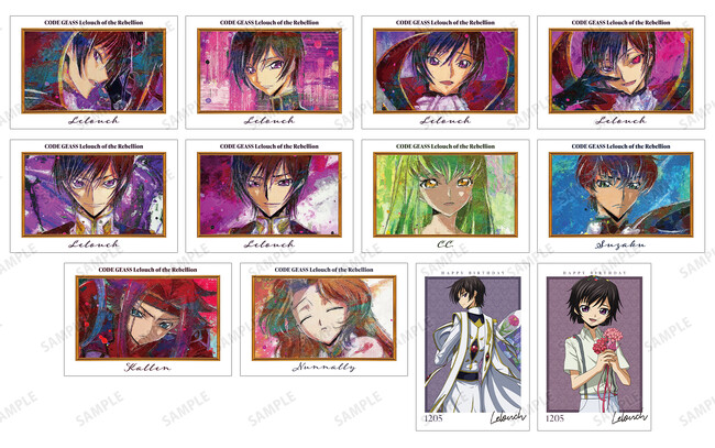※11月25日(土)より予約開始予定のECサイト「AMNIBUS」では、BOX購入特典として「ルルーシュ&C.C. grunge CANVAS ブロマイド AMNIBUS限定特典」を予定しております。
