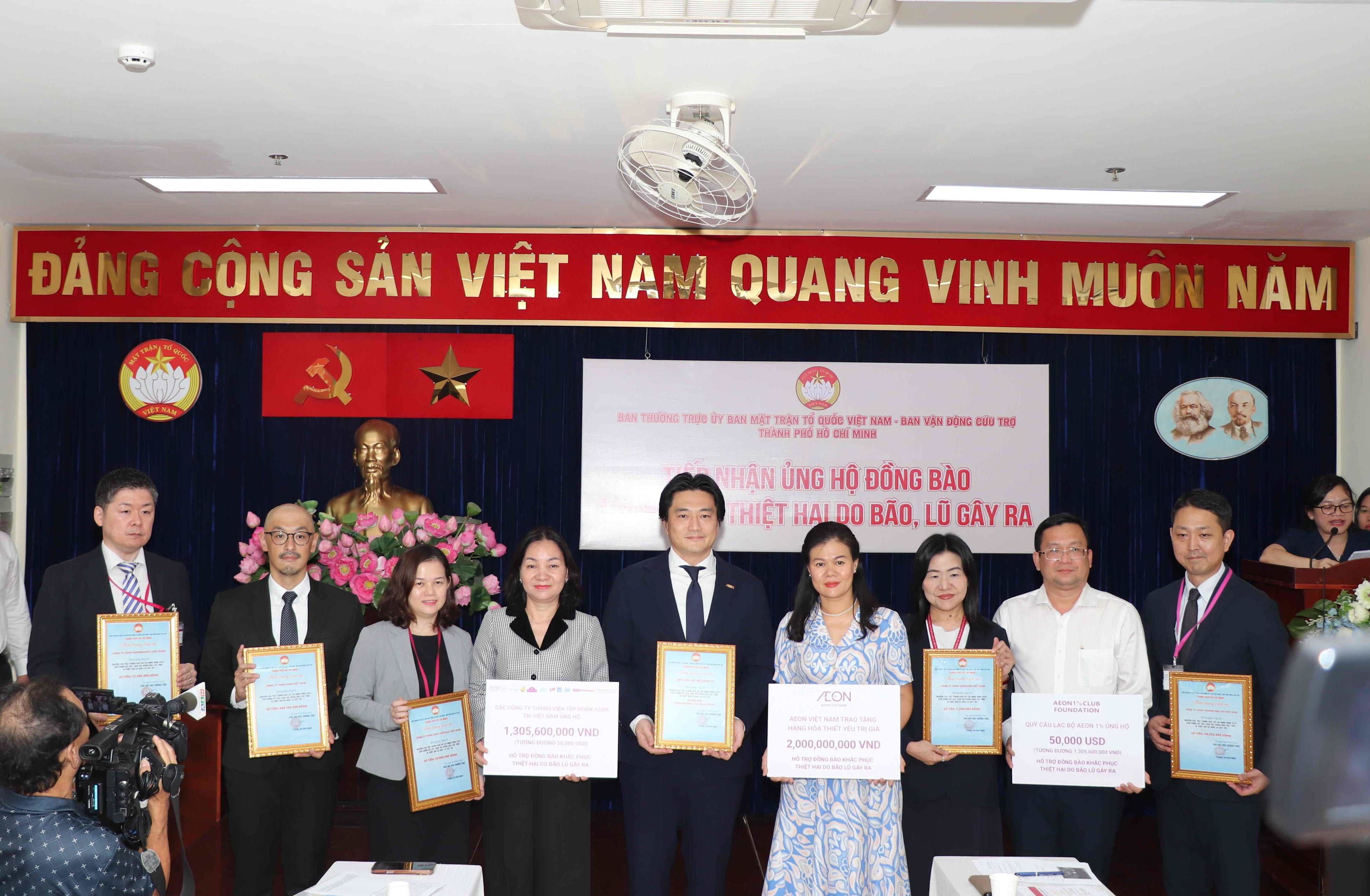イオンは、これらの被害への支援としてグループの現地法人各社より緊急支援金を拠出し、VIETNAM FATHERLAND FRONT (VFFC) IN HO CHI MINH CITYに計50,000USDを寄付いたしました。また、イオンベトナムより物資支援として、ホームコーディ―の寝具なども寄贈しました。