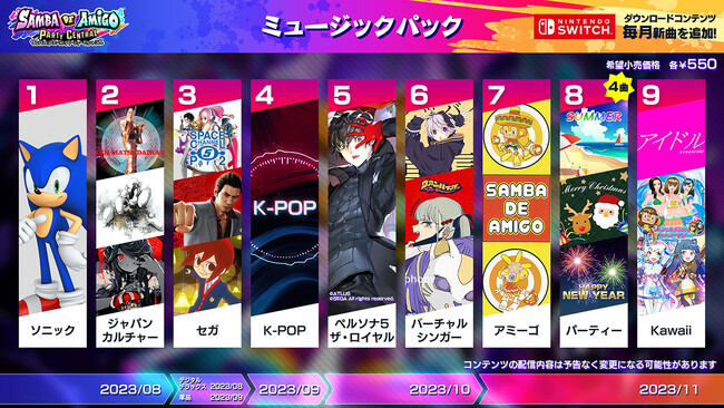 株式会社セガは、好評発売中のNintendo Switch(TM)用ソフト『サンバDEアミーゴ:パーティーセントラル』につきまして、11月30日(木)に新たなダウンロードコンテンツ(DLC)「Kawaii ミュージックパック」を配信することを発表しました。また、新たなプレイ動画を公開しました。