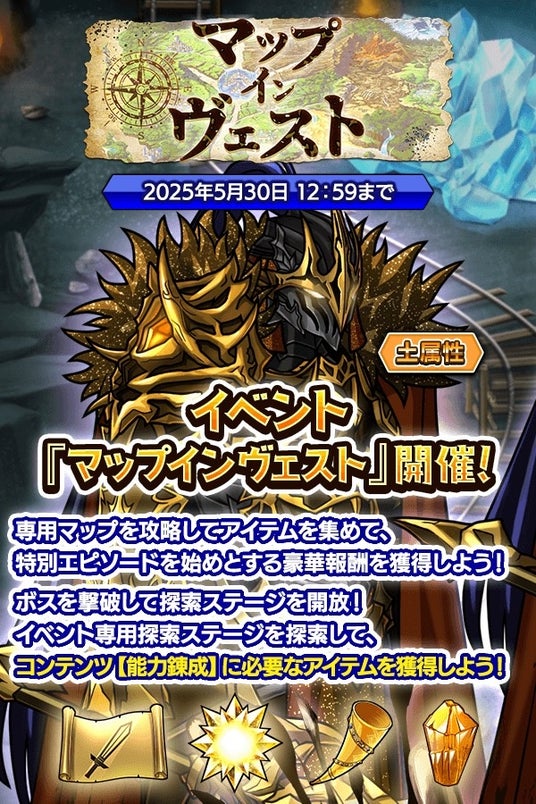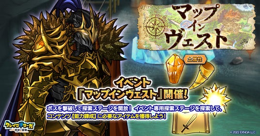 合同会社EXNOA(本社:東京都港区、CEO:村中 悠介、URL:https://games.dmm.com/)が運営するDMM GAMESにおいて本日5月14日(水)より、共感できる「推し」が見つかるRPG『クレイヴ・サーガ 神絆の導師』にてマップ・インヴェストが開催されたことをお知らせいたします。