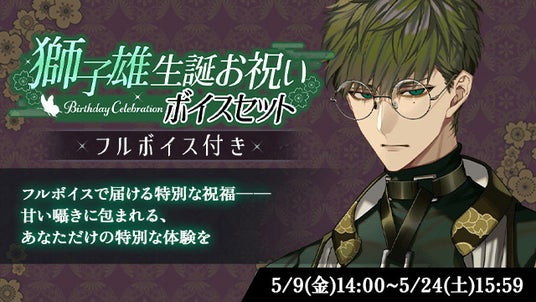 獅子雄の生誕を祝して、ここでしか聴けない誕生日ボイス付きミニシナリオが付いたセットを販売しております。