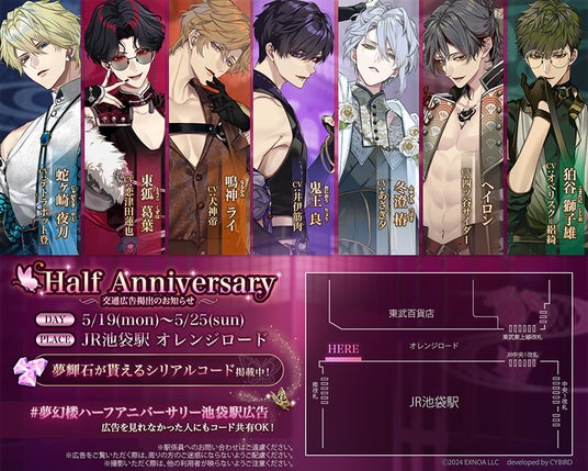 5月19日(月)よりJR池袋駅オレンジロードにて、ハーフアニバーサリーイラストを使用した広告を掲出しております。