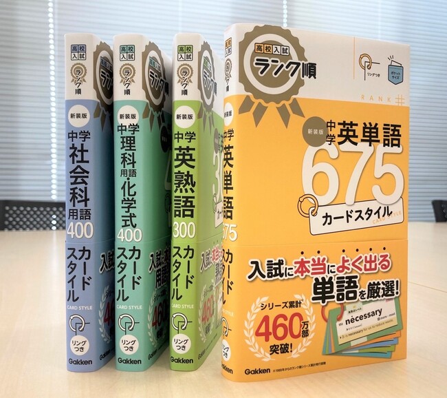 『高校入試ランク順』の姉妹版で、入試に出た単語・用語がポケットサイズの暗記カードになる『高校入試ランク順カードスタイル 新装版』(全4点)も同時発売中です。