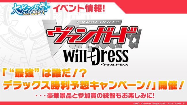 7月放送開始のアニメ「カードファイト!! ヴァンガード will+Dress」にて「”最強”は誰だ!?デラックス勝利予想キャンペーン!」が開催決定!