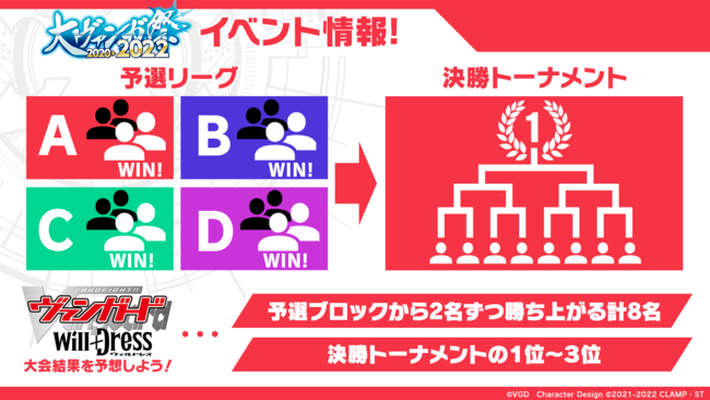 アニメ「カードファイト!! ヴァンガード will+Dress」では、全国から集められた16名の精鋭たちが、大会「デラックス」にて、日本最強のファイターの称号をかけて 3日間の予選を戦い抜き、 決勝トーナメントを争います!