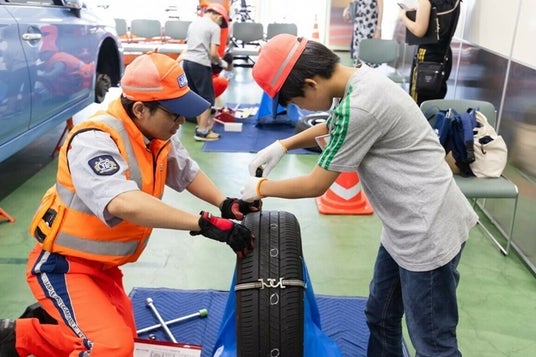 ロードサービス隊員になりきって、タイヤの交換作業に挑戦!
