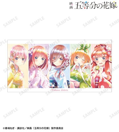 中野一花、中野二乃、中野三玖、中野四葉、中野五月の描き下ろしイラストを新たなタッチで魅力的に表現し、バスタオルに仕上げました。