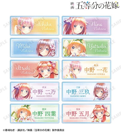 中野一花、中野二乃、中野三玖、中野四葉、中野五月の描き下ろしイラストを新たなタッチで魅力的に表現し、アクリルネームプレートに仕上げました。