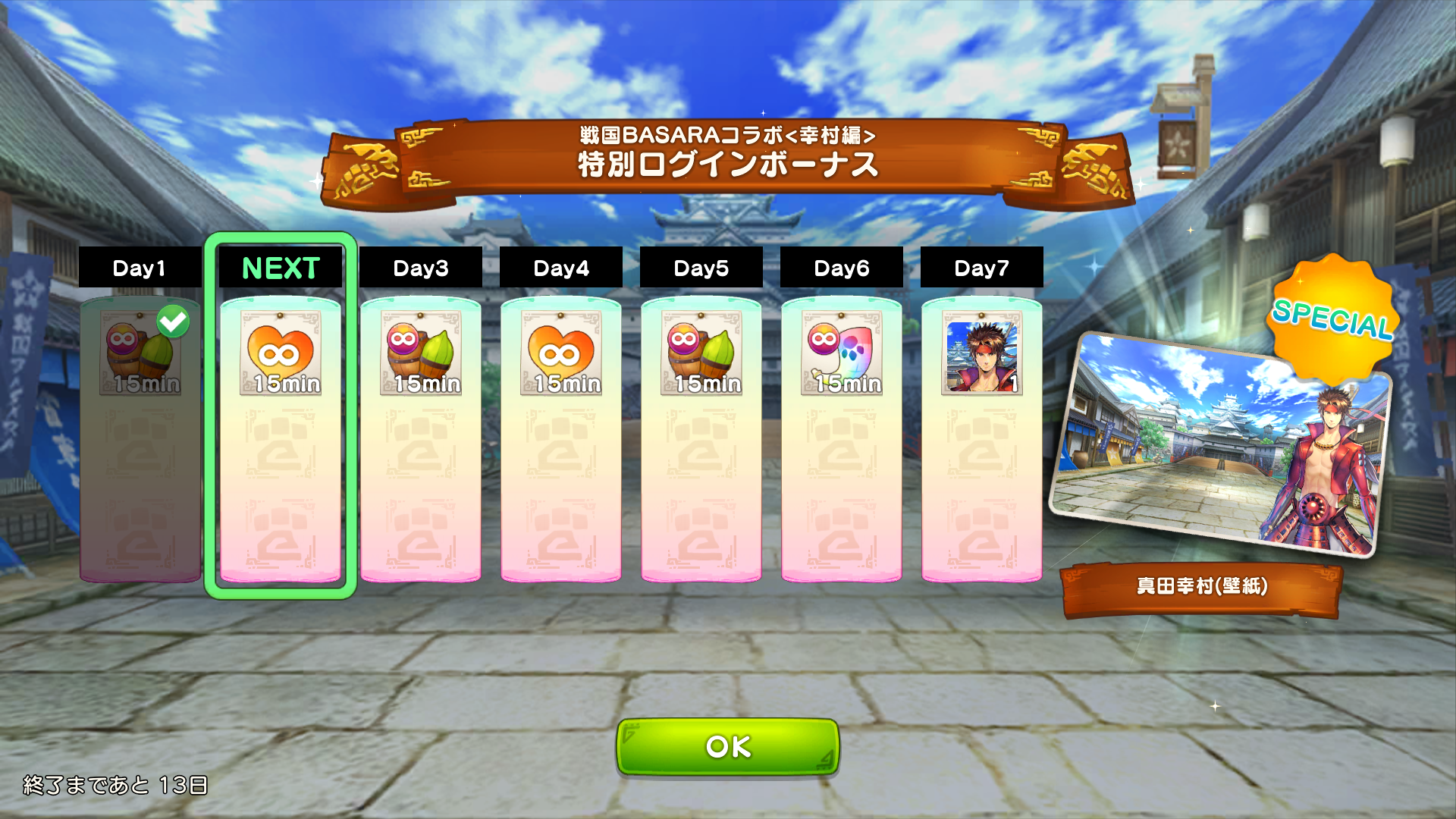 ■「戦国BASARAコラボ<幸村編>」特別ログインボーナス