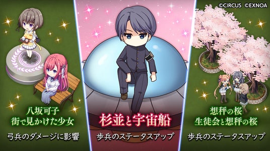 期間中のイベントでは、『D.C.5 PH』『D.C.5 SH』コラボ限定の進軍スキン「杉並と宇宙船」や、コラボ限定オーナメント「八坂可子」「街で見かけた少女」、拠点スキン「想秤の桜」と「生徒会と想秤の桜」を獲得できます。