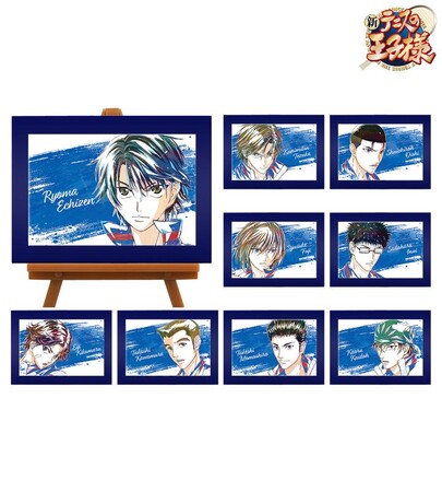 越前リョーマ、手塚国光、大石秀一郎、不二周助、乾 貞治、菊丸英二、河村 隆、桃城 武、海堂 薫を新たなタッチで魅力的に表現しました。